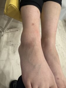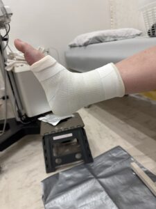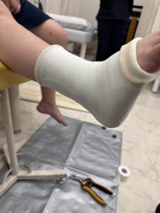 足首の靭帯損傷等によるものと判断し、荷重ができるギプス固定をさせて頂きました。